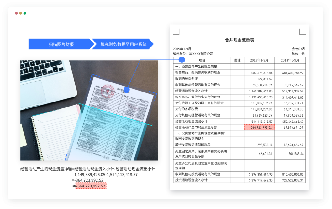 自研 OCR 算法,更贴近财务报表特点独创财务数据自动纠错算法,更高识别准确率独特的财务科目AI语义泛化,科目匹配率更高