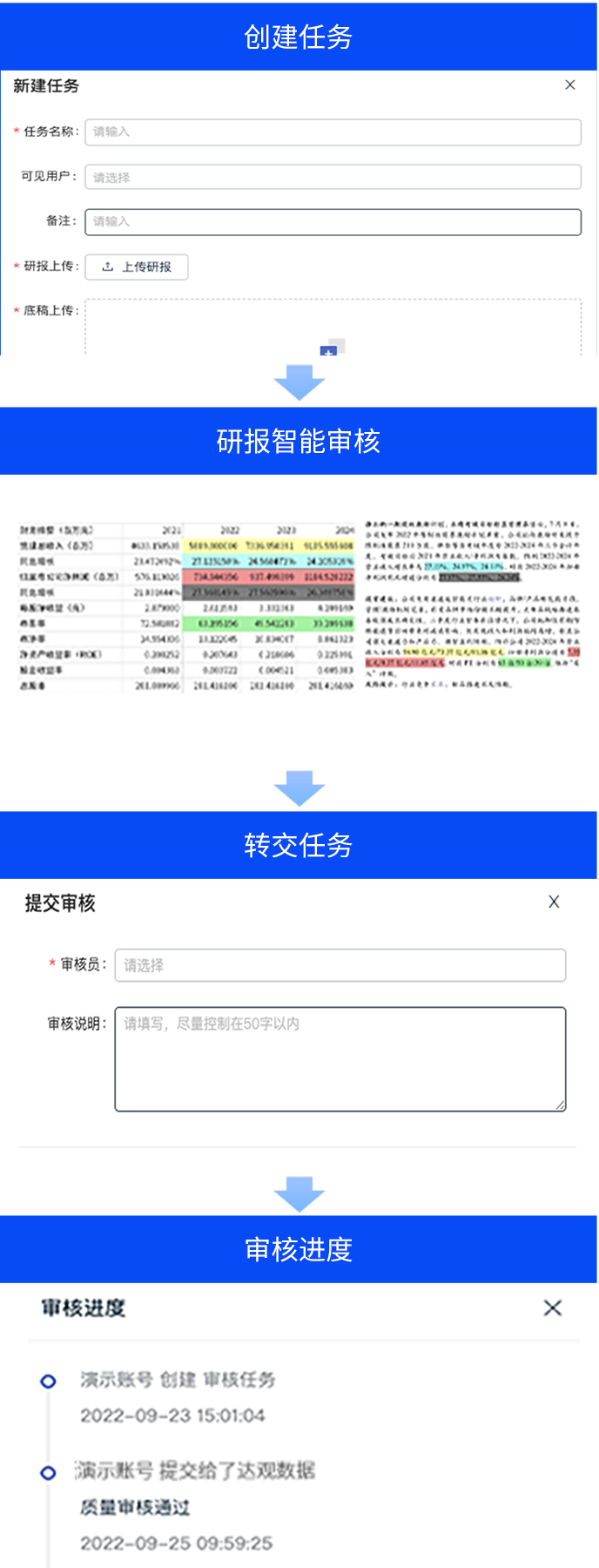 多维度研报智能审核,全面提示风险 研报审核流程管理